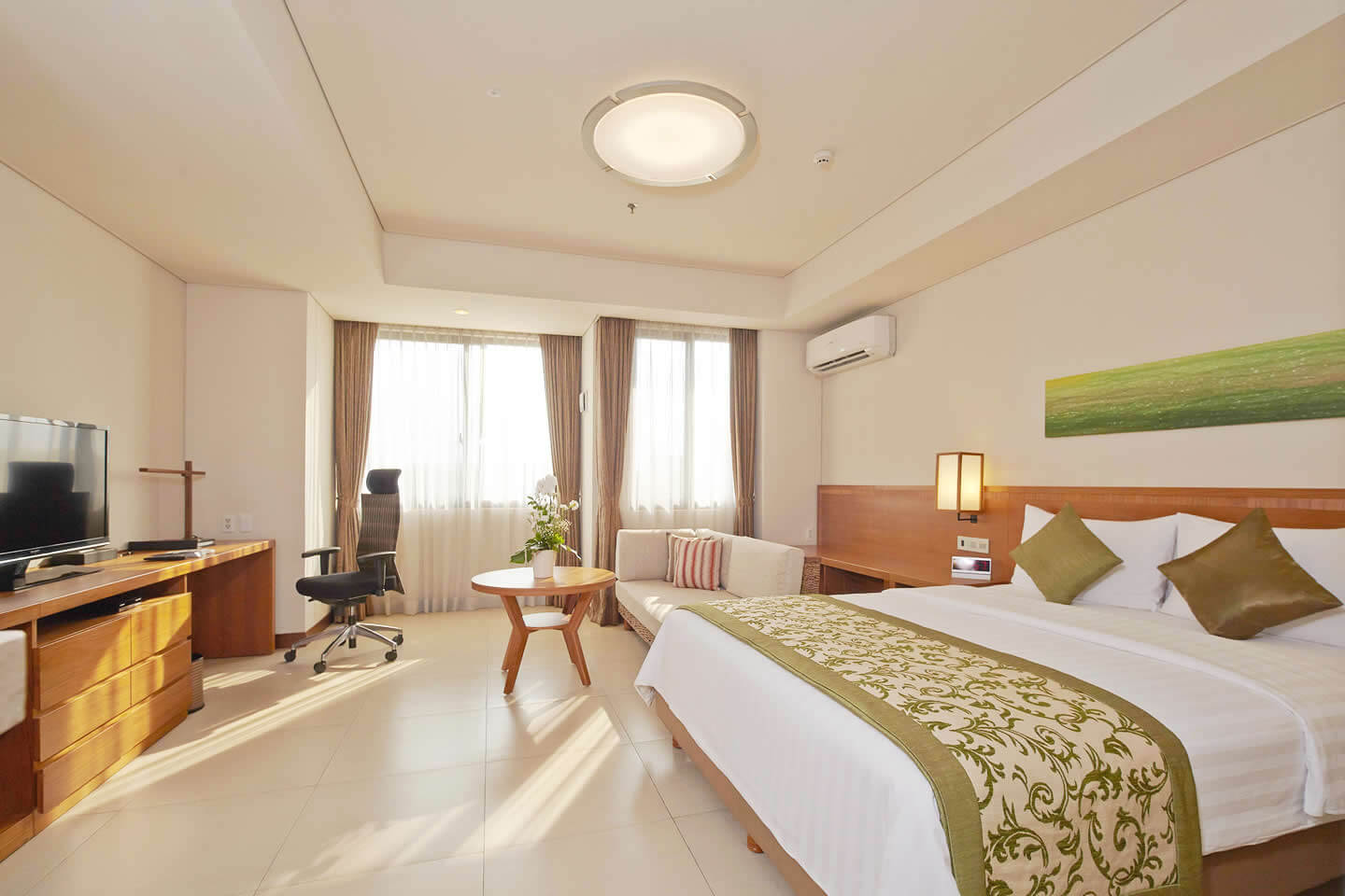 多目的室を備えたスイートタイプの客室、リビングダイニング、ベッドルームに加え、第三のお部屋はベッドルーム、書斎、収納部屋など、フリーでお使い頂けます。